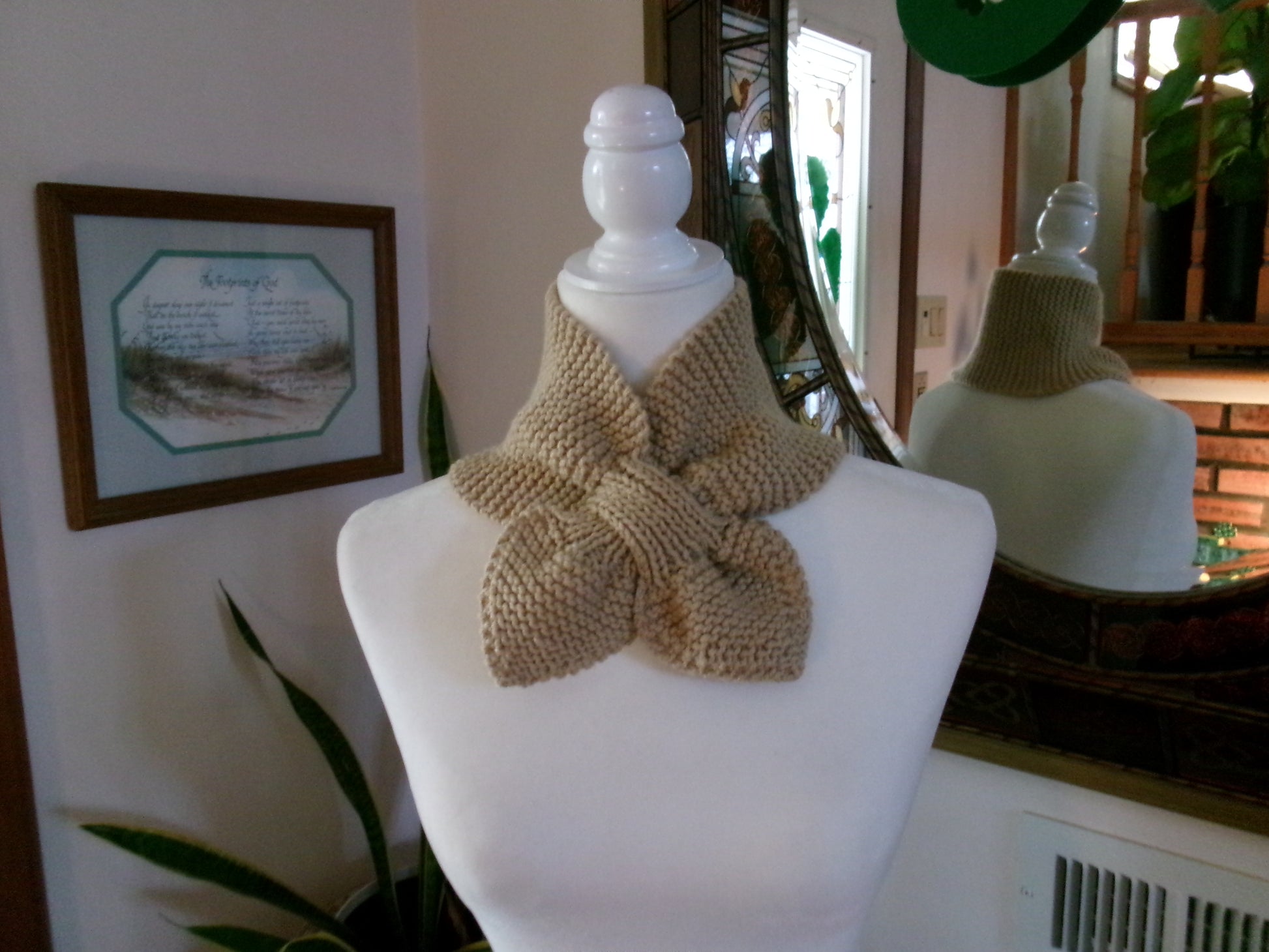 This is a keyhole scarf, which I affectionately call a Dolly scarf, after the woman who taught me how to make them.